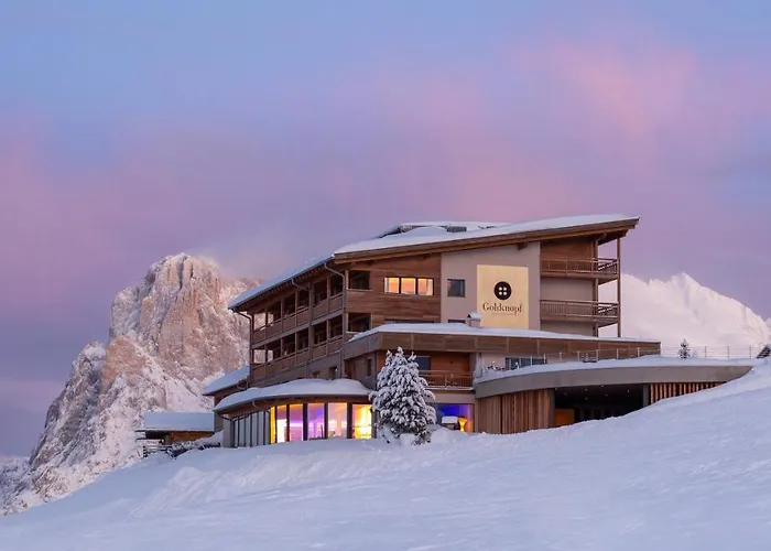 Dotato di Wi-Fi in tutta la struttura, l'hotel a 4 stelle Hotel Goldknopf Alpe Di Siusi offre sistemazione a 7 km dalla Chiesa di Sant'Antonio. Distante 3 km dal centro di Alpe Di Siusi, quest'hotel include un giardino arredato, un bagno turco, una Jacuzzi e una sauna.
